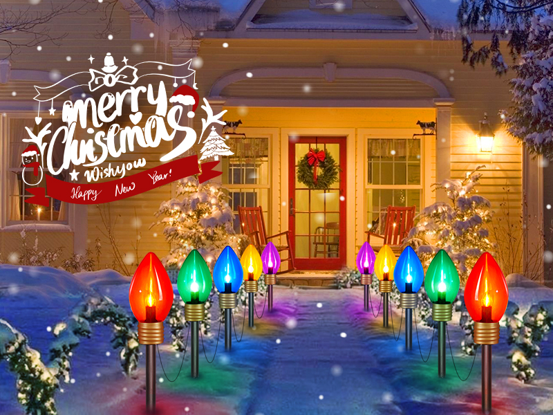 Christmas Decoration Outdoor 2 Pack Total 17 Ft 10 Led Hanging Jumbo Christmas Pathway Lights Multicolor Christmas Walkway Lights Waterproof Christmas Lights Outdoor Decoration For Yard Lawn Roof Amazon Com